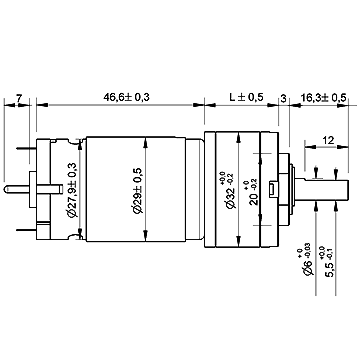 Planetengetriebemotor mit allen zugehörigen Einbau- und Anschlussdetails